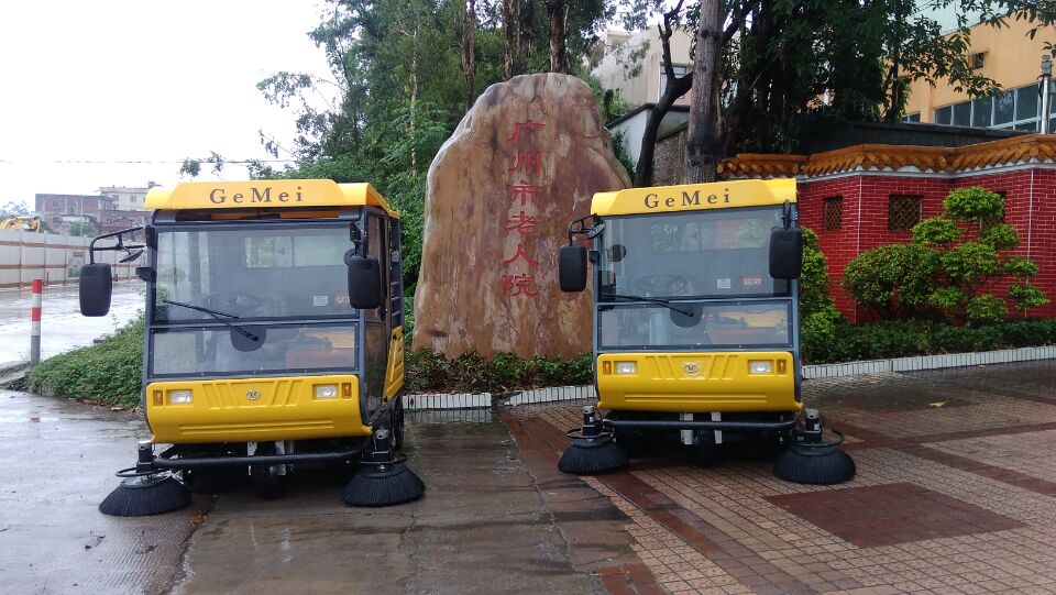 格美電動掃地車S10,清掃寬度1.9米,針對寒冷霧霾天氣和風沙環境而設計,能清掃包括樹葉、礦泉水瓶、易拉罐、 沙石等一系列垃圾,駕駛室配有風扇和推拉車頂,可讓操作員在一年四季大多數氣候條件下都能感到安全和舒適。
