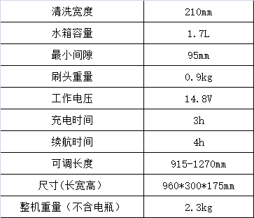 GTC-210B 經(jīng)過人體工學考量,具備伸縮手柄及可調(diào)刷頭角度設計。大容量鋰電保證續(xù)航時間長達4 小時。刷頭為難以到達的區(qū)域,如邊角、縫隙而設計。只須把刷頭安裝到卡槽上便可開展工作,靈活更換。
