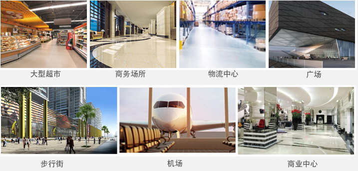 大型物流配送中心、工礦企業(yè)、學校、體育中心、廣場、公園、博物館、汽車站、火車站、飛機場、停車場、碼頭、大型生活小區(qū)、街道、商業(yè)中心、步行街等。